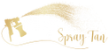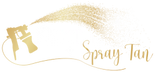 A simulated suntan produced by darkening the skin with a sprayed-on chemical preparation